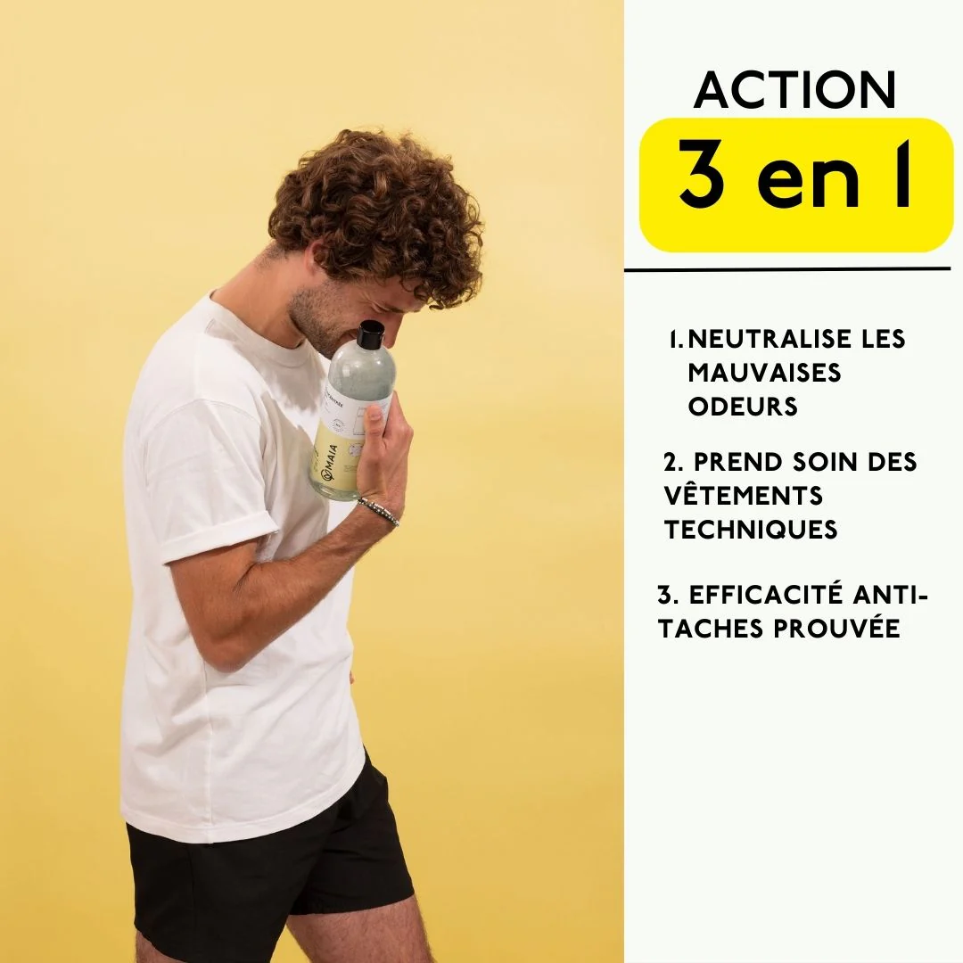 🇫🇷 La lessive française zéro sulfate 🏃SPÉCIALE SPORT, 🍋🟩Parfum ultra-frais ✨Efficacité prouvée dès 30°C qui neutralise les mauvaises odeurs 🌿Formule saine: 98.3% ingrédients d'origine naturelle, zéro ingrédient controversé 🌍Formule concentrée pour vêtements techniques: 1L = 33 lavages